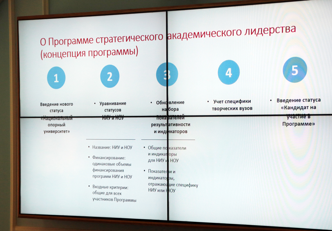 Проректор по реализации программ стратегического развития НИУ «БелГУ» Андрей Пересыпкин рассказал о проекте Минобрнауки России «Программа стратегического академического лидерства», предусматривающем отбор национальных исследовательских университетов (НИУ) и национальных опорных университетов (НОУ), и акцентировал внимание на показателях результативности деятельности университета в рамках этого проекта.
