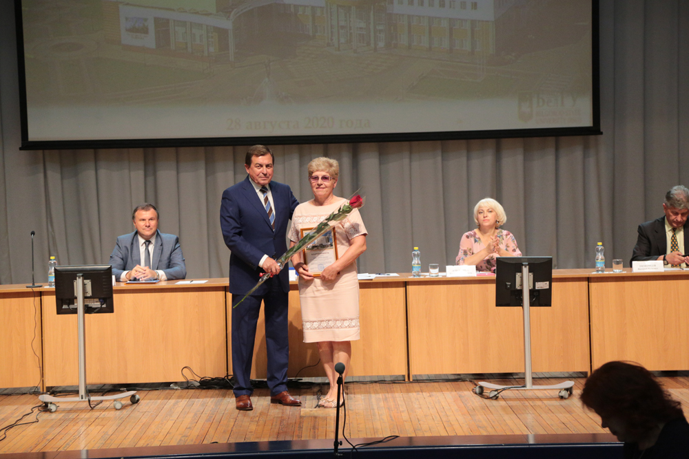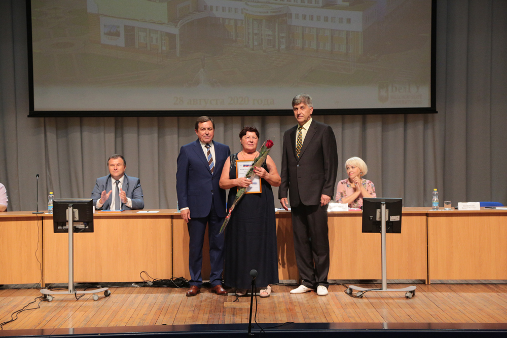 За значительные заслуги в сфере образования почётное звание «Почётный работник сферы образования Российской Федерации» присвоено директору центра развития компетенций Наталье Кирий и профессору кафедры журналистики Александру Короченскому. Почётное звание «Почётный работник науки и высоких технологий РФ» присвоено заведующему кафедрой фармакологии и клинической фармакологии медицинского института Михаилу Покровскому. Почётной грамотой Министерства науки и высшего образования РФ награждены проректор по образовательной деятельности Александр Маматов и директор центра развития физической культуры и спорта Владимир Кривченков. Четверо представителей факультета журналистики за профессионализм и в связи с 15-летием со дня основания факультета поощрены Благодарностями губернатора, председателя Белгородской областной Думы и администрации города Белгорода. Олег Николаевич поздравил также пятерых сотрудников с присвоением почётного звания «Ветеран труда НИУ «БелГУ». На конференции были вручены почётные грамоты и благодарности НИУ «БелГУ».