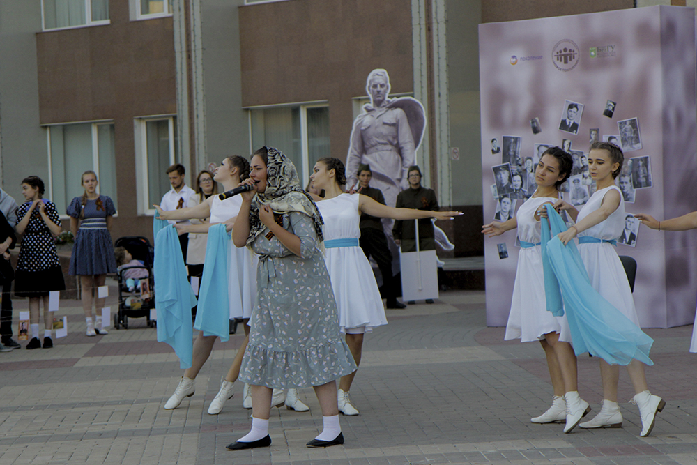 Университетская площадь на некоторое время превратилась в центр культурной жизни Белгорода: проводились мастер-классы «Роспись из лент» и «Изготовление патриотической броши из лент», состоялась церемония награждения победителей регионального этапа всероссийского конкурса исследовательских работ «Правнуки Победителей». Для женщин, прошедших войну, была подготовлена акция «Синий платочек». Творческие коллективы молодёжного культурного центра Белгородского госуниверситета подготовили обширную танцевальную программу. Украшением бала Победы стали творческие номера коллектива бального танца «Вдохновение», арт-студии «Вереск», вокальной группы «Университет», студии танца «Данс Хаос», коллектива современного бального танца «Ритм» и ансамбля народной песни «Отрада». Финальным аккордом события стала театрализованная постановка «Бессмертный полк».
