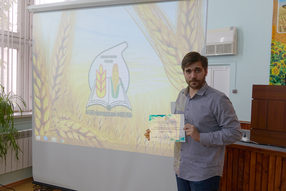 По итогам работы Школы молодых учёных каждому участнику были вручены памятные сертификаты, подписанные директором ФГБНУ «Белгородский ФАНЦ РАН», доктором сельскохозяйственных наук, профессором, членом-корреспондентом РАН Сергеем Ивановичем Тютюновым.