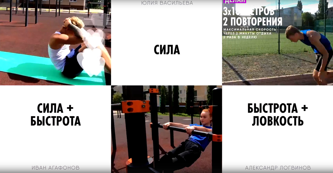 Комплекс эффективных спортивных упражнений представлен в видеороликах, размещённых в группе ВФСК ГТО в НИУ «БелГУ» в социальной сети ВКонтакте: https://vk.com/gtobsu. Как сделать себя сильнее, выносливее и красивее, рассказывают победители всероссийского фестиваля ГТО: Иван Агафонов, Рустам Абдиев, Екатерина Бражник, Александр Логвинов, Елена Прасол и Юлия Васильева.