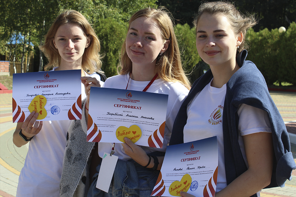 Первая школа студенческих педагогических отрядов Белгородской области проводилась Белгородским госуниверситетом в рамках реализации гранта Всероссийского конкурса молодёжных проектов среди образовательных организаций высшего образования в 2020 году при поддержке Федерального агентства по делам молодёжи и ФГБУ «Ресурсный молодёжный центр». Организаторами Школы выступили: департамент воспитательной деятельности НИУ «БелГУ», студенческий совет «Союз студентов НИУ «БелГУ» и штаб студенческих трудовых отрядов университета, а также Белгородское региональное отделение Российских студенческих отрядов.
