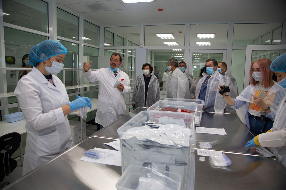 Марина Скоркина провела экскурсию по обновлённой кафедре биохимии и лабораторным боксам, рассказала о задачах, стоящих перед учёными и молодыми исследователями.