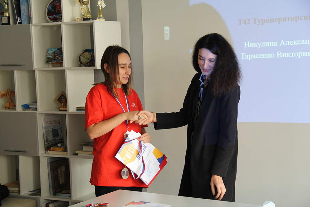 В открытой в этом году новой компетенции «Туроператорская деятельность» победителями стали студентки института экономики и управления Елизавета Воронина и Алина Плетнева, второе место у Александра Никулина и Виктории Тарасенко, а третье заняли Мария Коханова и Виктория Семенко.