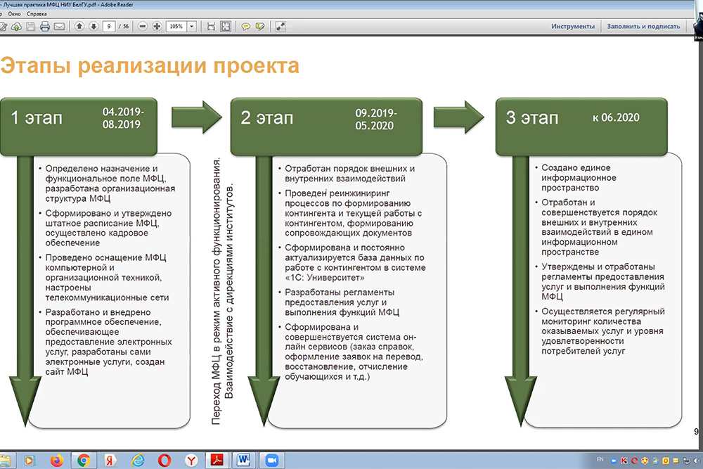 В 2020 году на конкурс в номинацию «Проекты в области бережливого управления» был направлен проект «Создание МФЦ НИУ «БелГУ». Успешно пройдя первый этап оценки, проект университета вышел в финал.