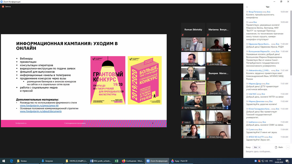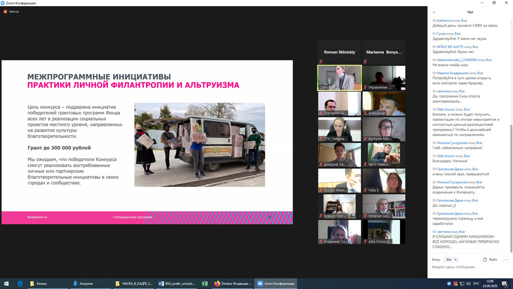 Состоялась всероссийская межвузовская онлайн-конференция, на которой были представлены обновленные мероприятия Благотворительного фонда В. Потанина на 2020/2021 учебный год