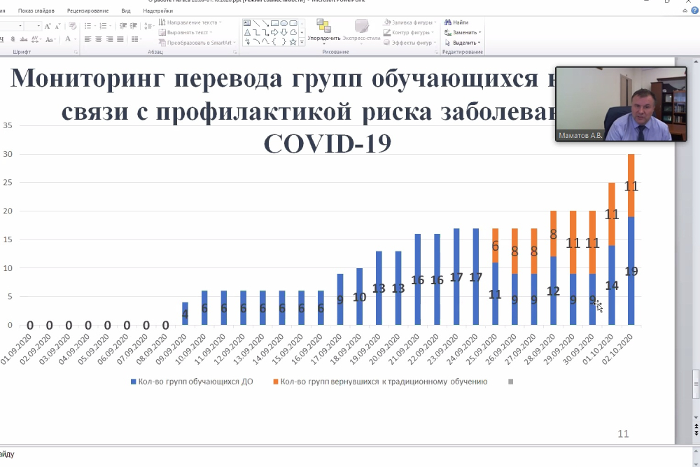 - Вы знаете, что идёт рост количества заболеваний как ОРВИ, так и коронавирусной инфекцией. Мы ведём ежедневный мониторинг заболеваемости, контролируем этот процесс и в случае необходимости готовы к увеличению количества онлайн-занятий и переводу части сотрудников на удалённый режим работы, - подчеркнул Олег Николаевич.