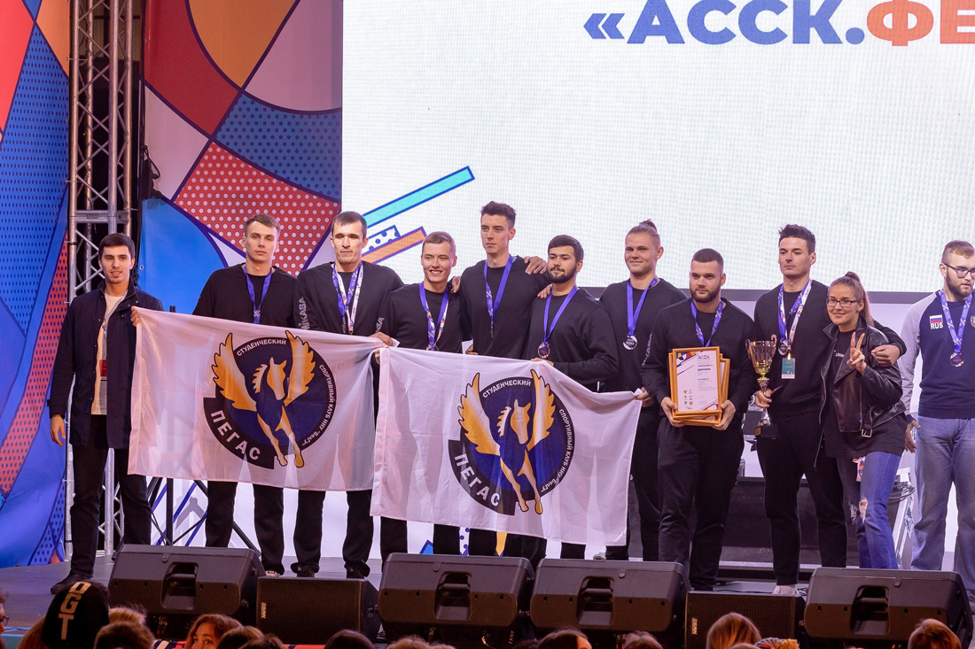 Всероссийский фестиваль студенческого спорта проходил в Казани, а его участниками стали 2500 студентов всех регионов России. Студенческий спортивный клуб «Пегас» Белгородского госуниверситета представляли волейбольные команды, баскетбольные (3x3) и команда по настольному теннису. Стоит отметить, что для активистов спортклубов была предусмотрена образовательная программа. В ней участвовали - Татьяна Титова, Андрей Вартанян (педагогический институт), Диана Сайфтдинова (институт экономики и управления).