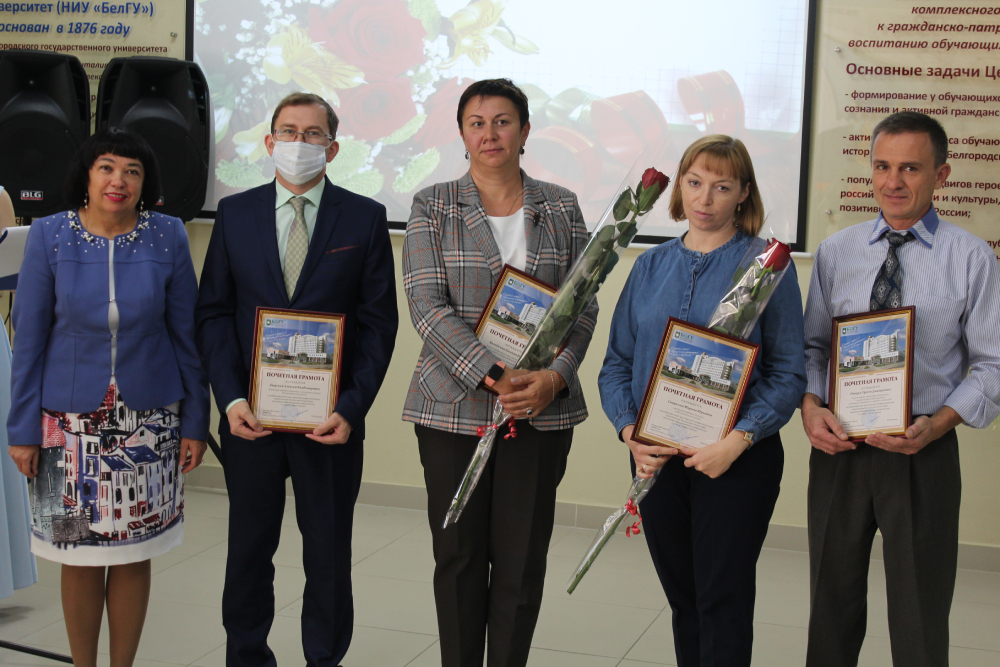 Благодарностью администрации города Белгорода были поощрены доцент кафедры социальных технологий и государственной службы Олег Быхтин, доцент кафедры природопользования и земельного кадастра Павел Голеусов и преподаватель Инжинирингового колледжа Николай Кирсенко.