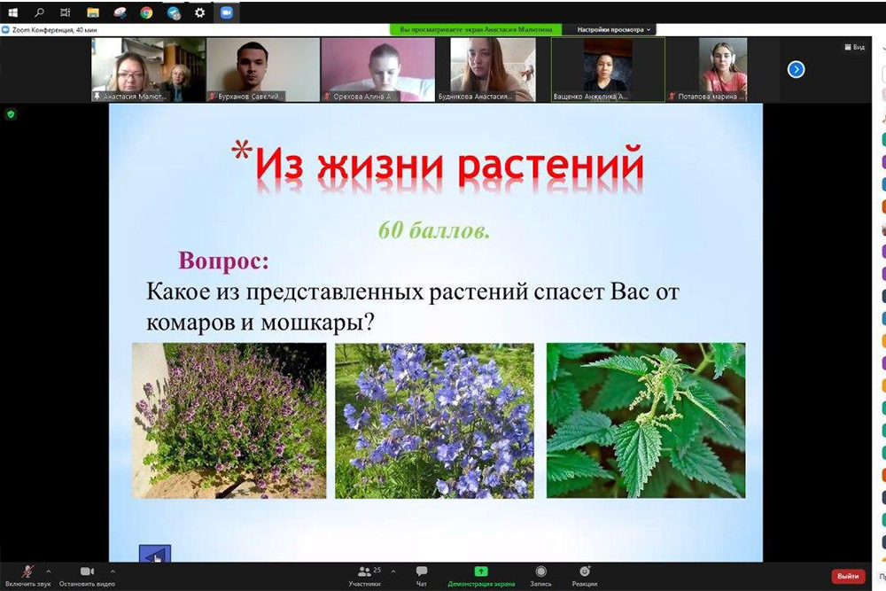Преподаватели института фармации, химии и биологии Анастасия Малютина и Наталья Шестопалова организовали и провели для студентов 4 курса интерактивную викторину «Своя игра» фармакогностической направленности. Тематика вопросов охватывала весь курс обучения студентов, которые успешно справились с заданиями.
