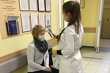 Добровольцы Белгородского госуниверситета во время распространения новой коронавирусной инфекции продолжают работу. Одно из самых многочисленных направлений – это волонтеры-медики, которые продолжают активную работу по оказанию социальной, консультативной и информационной помощи белгородцам. В настоящее время студенты медицинского института проводят дежурство в поликлинике НИУ «БелГУ»: измеряют температуру посетителям, обрабатывают руки, помогают в процедурном кабинете. Работают волонтёры-медики и в кабинете, где проводится тестирование на ковид, помогая сотрудникам в организации безопасного режима сдачи анализов, а также оказывают помощь персоналу Первой городской больницы.