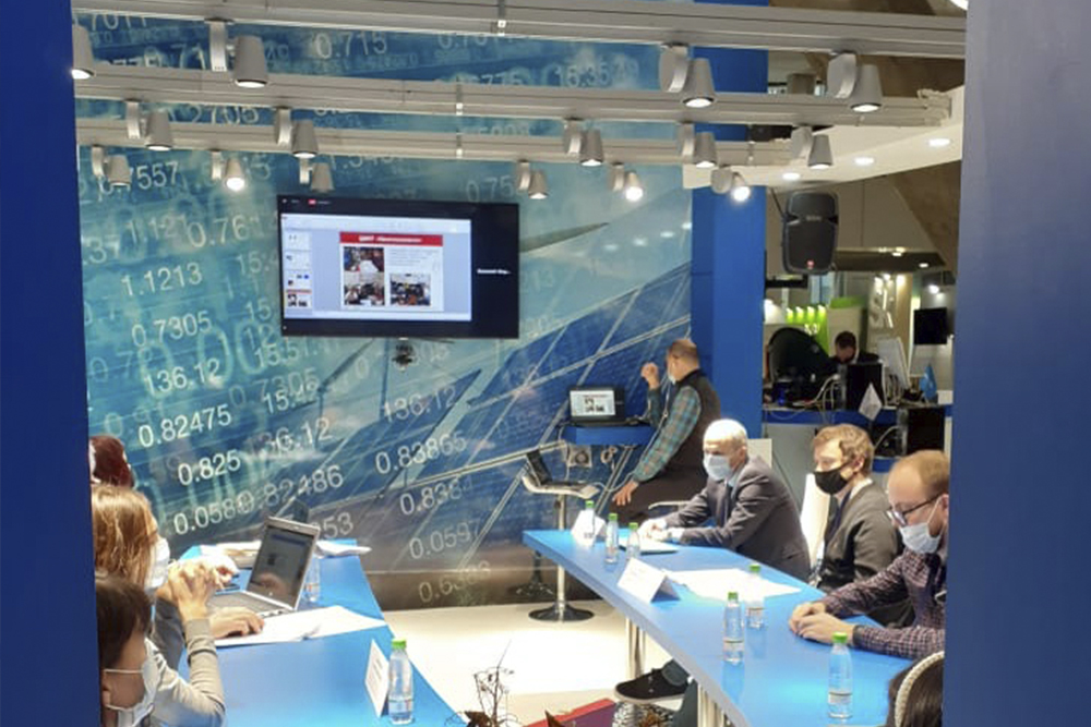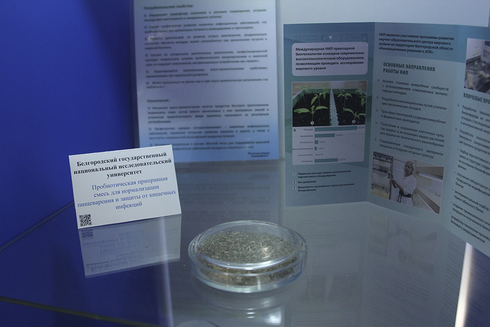 После участия в панельных дискуссиях участники и гости форума «Открытые инновации» смогли познакомиться с разработками НИУ «БелГУ», представленными на стенде Минобрнауки России.