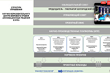 Представляя опыт и перспективы развития Белгородского НОЦ, руководитель научно-производственной платформы «Селекционно-генетические исследования, клеточные технологии и генная инженерия (в области растениеводства)» НОЦ «Инновационные решения в АПК» Екатерина Журавлева рассказала о значении грамотно продуманной структуры управления НОЦ, ключевыми элементами которой являются Наблюдательный и Управляющий советы, Проектный офис и пять Научно-производственных платформ.