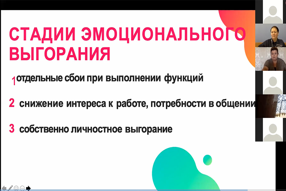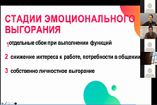 Доцент кафедры менеджмента и маркетинга, кандидат социологических наук Яна Серкина провела мини-тренинг по профилактике эмоционального выгорания педагогов и рассказала, как распознать первые факторы надвигающего стресса.