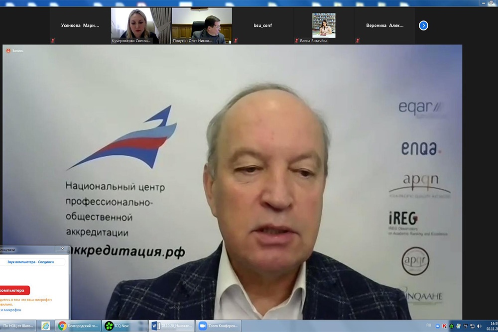 В заседании совета, которое прошло под председательством ректора НИУ «БелГУ», профессора Олега Полухина в дистанционном режиме, приняли участие представители ректората, преподаватели и руководители структурных подразделений. О формировании системы независимой оценки качества образования в Белгородском госуниверситете рассказала директор центра менеджмента качества Светлана Кучерявенко. Светлана Алексеевна отметила, что в период с 2019 по 2020 год в НИУ «БелГУ» были проведены федеральный интернет-экзамен для выпускников бакалавриата, международная профессионально-общественная аккредитация образовательных программ, входной контроль уровня подготовленности обучающихся первого курса. Проведенные мероприятия позволили выявить определенные улучшения, сформировать план действий по устранению проблем и разработать предложения по дальнейшему развитию системы независимой оценки качества образования. Содокладчиком по этому вопросу выступил генеральный директор НИИ мониторинга качества образования, профессор Владимир Наводнов, который рассказал о сегодняшней системе независимой оценки качества образования, отметив её многогранность. Владимир Григорьевич поздравил коллектив университета с полученной высокой оценкой в Национальном и Глобальном агрегированных рейтингах (НИУ «БелГУ» вошёл в Премьер-лигу по результатам НАР-2020 и в ТОП-4 по результатам ГАР-2020), отметив, что это очень хороший показатель развития вуза. Генеральный директор НИИ мониторинга качества образования пожелал университету повышать свои позиции в рейтингах и дал рекомендации по расширению участия НИУ «БелГУ» в федеральных интернет-экзаменах и интернет-олимпиадах. Ректор НИУ «БелГУ» поблагодарил Владимира Григорьевича за многолетнее сотрудничество с вузом, подчеркнув, что совершенствование системы независимой оценки качества образования очень важно для университета. Олег Николаевич подчеркнул необходимость принятия дополнительных мер по расширению внутреннего аудита, вовлечению студентов в движение интернет-экзаменов и интернет-олимпиад.
