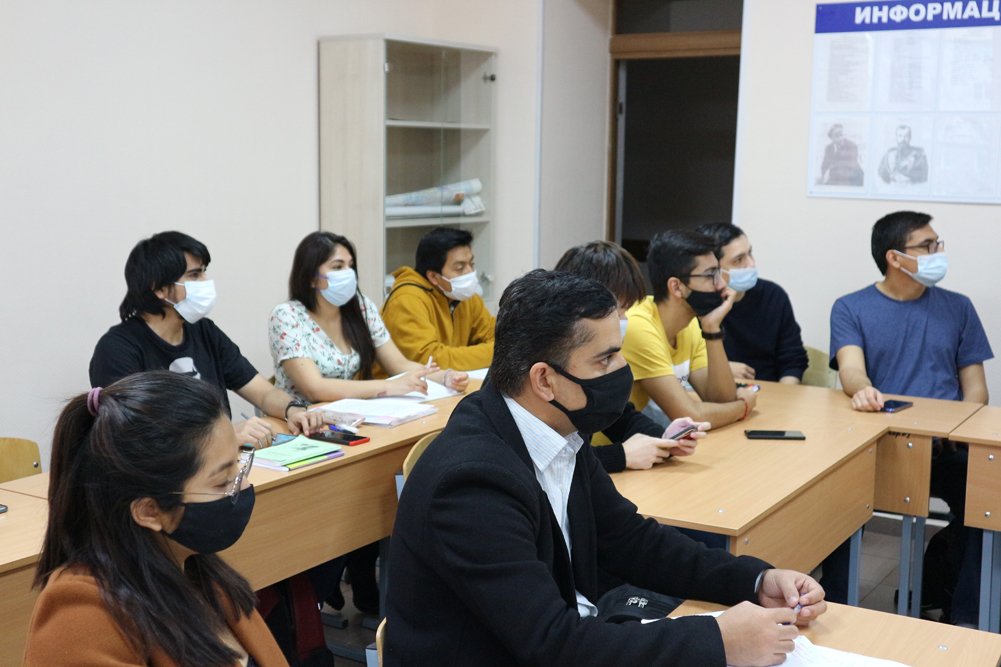 Старший преподаватель кафедры русского языка, профессионально-речевой и межкультурной коммуникации, кандидат исторических наук Анастасия Стржалковская ознакомила студентов из Эквадора, Колумбии, Афганистана и Ирака с историей Дня народного единства, уходящего корнями в 1612 год. Студенты узнали, что 4 ноября (по новому стилю) народное ополчение под предводительством Кузьмы Минина и Дмитрия Пожарского положило конец польской интервенции. Официально в современной России праздник утверждён и является выходным днём с декабря 2004 года.