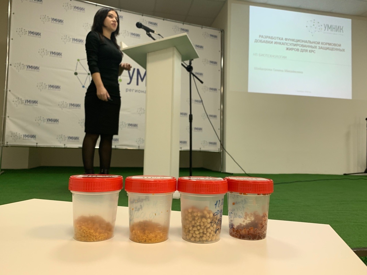 – На сегодняшний день «защищённые» жиры производят из импортного сырья, преимущественно фракций пальмового масла и гидрированных жирных кислот, что негативно сказывается на усвояемости жиров в организме животных. Мы поставили перед собой задачу - разработать новые «защищённые» жиры на основе ненасыщенных жирных кислот и, соответственно, технологию их производства на территории РФ, – рассказала заместитель директора института фармации, химии и биологии, кандидат биологических наук Ульяна Круть.