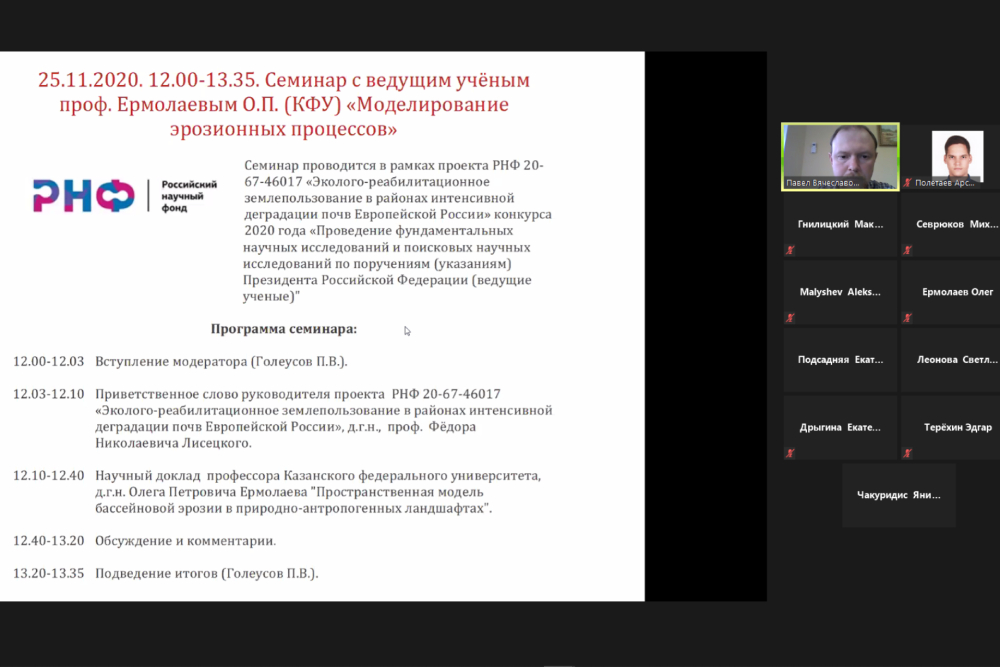 Семинар был организован в рамках проекта Российского научного фонда «Эколого-реабилитационное землепользование в районах интенсивной деградации почв Европейской России».