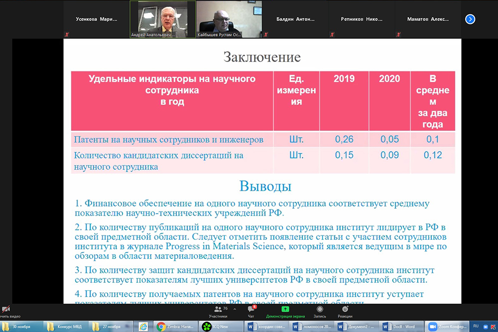 По итогам обсуждения проректор по образовательной деятельности Александр Маматов дал поручение актуализировать показатели программы развития института с учётом увеличения объёма НИОКР, публикационной активности и других.