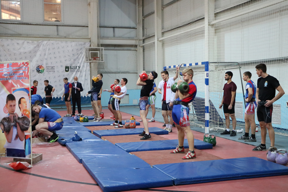 В соревнованиях принимали участие 60 спортсменов из 15-ти вузов, представляющих десять регионов страны. В упражнении «толчок по длинному циклу двух гирь по 32 кг» победителями стали студенты факультета физической культуры педагогического института Белгородского госуниверситета Сергей Лупандин (весовая категория до 63 кг) и Павел Чуев (весовая категория до 85 кг), второе место занял также представитель НИУ «БелГУ» Олег Зубков.