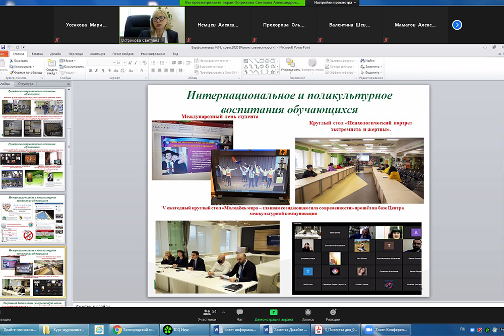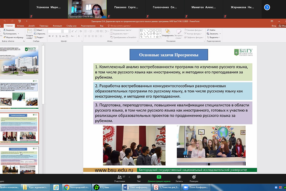 Члены совета также утвердили дорожную карту по реализации «Программы НИУ «БелГУ» по продвижению русского языка за рубежом в 2021 году, рассмотрели программу формирования многоязычной среды и перехода к двуязычному образованию в НИУ «БелГУ» на 2021-2025 год и обсудили ряд мероприятий по обеспечению образовательной и воспитательной деятельности в условиях распространения коронавируса.