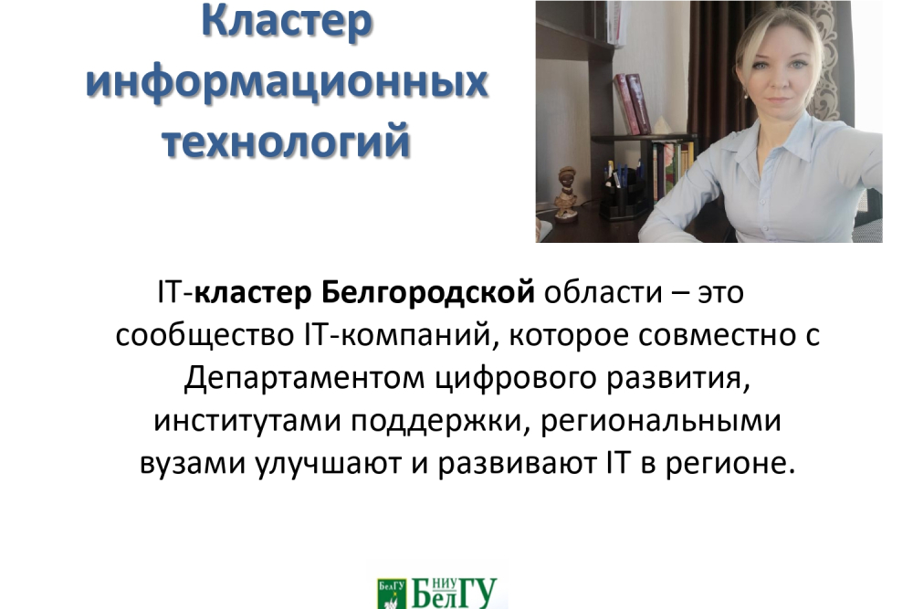 Доцент кафедры прикладной экономики и экономической безопасности института экономики и управления Анна Кулик в дистанционном формате представила свои исследования, выполненные в рамках государственного задания «Фундаментальные основы глобальной территориально-отраслевой специализации в условиях цифровизации и конвергенции технологий» (руководитель кандидат экономических наук, доцент кафедры прикладной экономики и экономической безопасности Юлия Лыщикова) на IX всероссийской научно-практической конференции с международным участием «Стратегия и тактика социально-экономических реформ: национальные приоритеты и проекты», касающийся развития инновационных процессов в Белгородском регионе под влиянием цифровой трансформации.