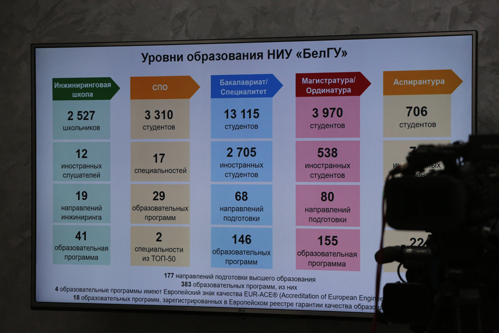 - С каждым годом в НИУ «БелГУ» растёт количество бюджетных мест. В 2021 году мы предоставляем 8000 мест для абитуриентов, в том числе – 3654 места – на бюджетной основе. Много мест у нас – на инженерных, педагогических, медицинских направлениях подготовки. Мы заинтересованы в привлечении талантливых абитуриентов, для которых в НИУ «БелГУ» есть все возможности. Желаю всем выпускникам успешно сдать ЕГЭ или вступительные испытания и поступить на выбранную специальность в наш университет, - отметил Олег Николаевич.