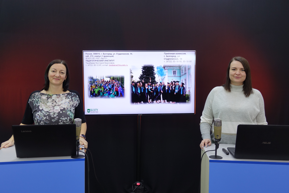В прямом эфире на вопросы абитуриентов ответила директор педагогического института, доктор социологических наук, профессор Виктория Тарабаева. Вёл встречу студент 4 курса историко-филологического факультета, председатель Союза студентов НИУ «БелГУ Андрей Оробинский.