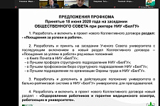 Делегаты конференции рассмотрели предварительные итоги научно-исследовательской деятельности, развития инфраструктуры университета, выполнения бюджета, утвердили социальный пакет на 2021 год и наметили планы на будущее