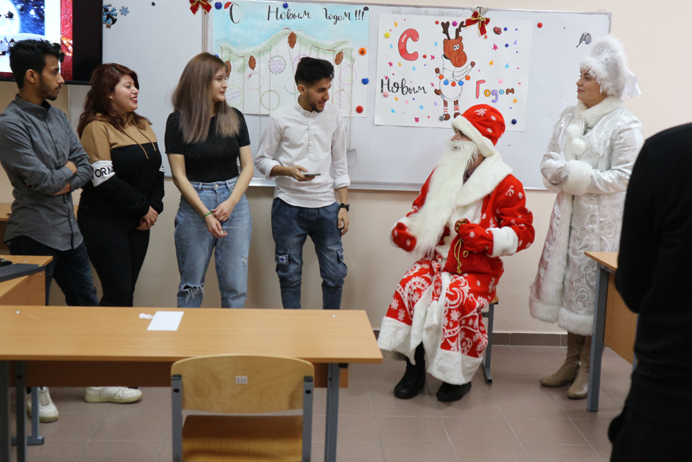 На факультете в очном формате для студентов был организован и проведен тематический Новогодний урок, в ходе которого тьюторы рассказали иностранным слушателям о традициях празднования Нового года в России и провели мастер-класс по изготовлению снежинок из бумаги. Мероприятие посетили и ключевые фигуры новогодних праздников – Дед Мороз и Снегурочка. Иностранные обучающиеся рассказали сказочным персонажам стихотворения на русском языке, разучили и спели новогоднюю песню.