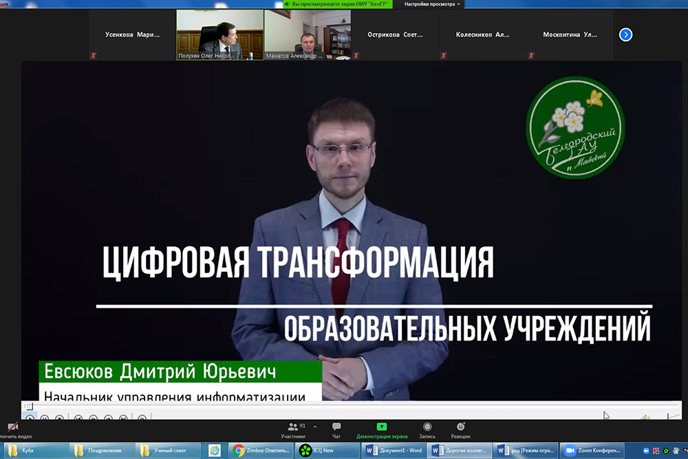 На заседании учёного совета, которое прошло в формате видеоконференцсвязи под председательством ректора, профессора Олега Полухина, были рассмотрены основные направления деятельности университета по цифровизации и перспективы цифрового развития НИУ «БелГУ».