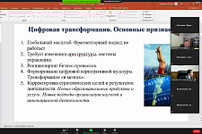 Проректор по образовательной деятельности Белгородского госуниверситета Александр Маматов, говоря об основных итогах цифрового развития вуза, отметил следующие положительные результаты: это создание цифровой инфраструктуры и автоматизация административных процессов. По словам Александра Васильевича, в вузе используется информационная система управления учебным процессом, в которой оцифрованы все процессы организации образовательной деятельности, начиная от подачи абитуриентом заявления и заканчивая печатью дипломов. Проректор подчеркнул, что студентам доступны услуги в электронном виде в рамках деятельности многофункционального центра, в учебном процессе используется цифровой образовательный контент. На сегодняшний день в системе электронного обучения «Пегас» размещено более 4600 внутренних онлайн-курсов, используются массовые открытые онлайн-курсы как собственные, так и других университетов. Говоря о дальнейшей работе, Александр Маматов подчеркнул необходимость глобальной цифровой трансформации всей университетской структуры с переходом к новым способам мышления. Проректор представил коллегам программу цифрового развития НИУ «БелГУ» на 2021-2023 год, согласно которой предстоит цифровое развитие образовательной сферы, системы управления и научно-инновационной деятельности. О важности цифровой трансформации вузов и необходимости их объединения в коллаборации высказал мысль содокладчик по этому вопросу – начальник управления информатизации Белгородского государственного аграрного университета имени В.Я. Горина Дмитрий Евсюков.