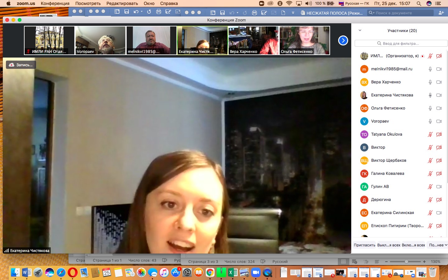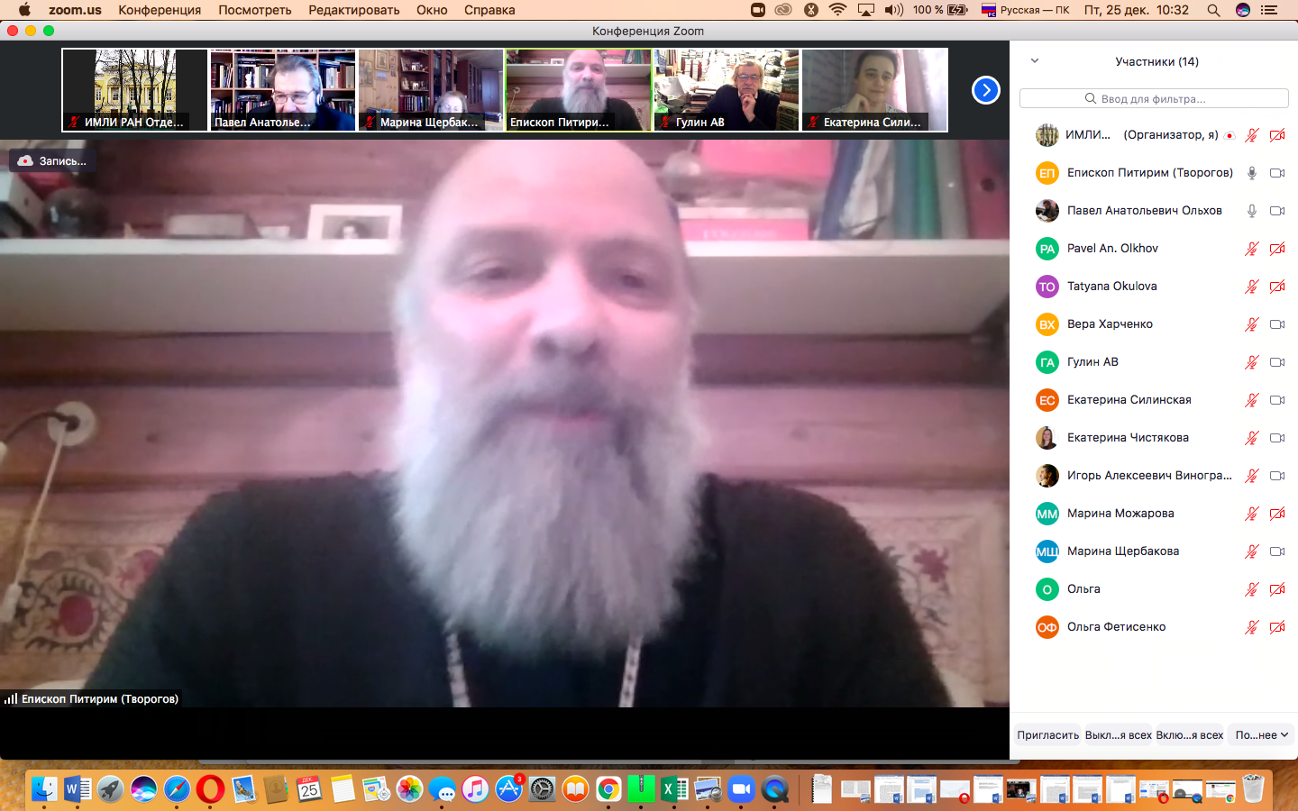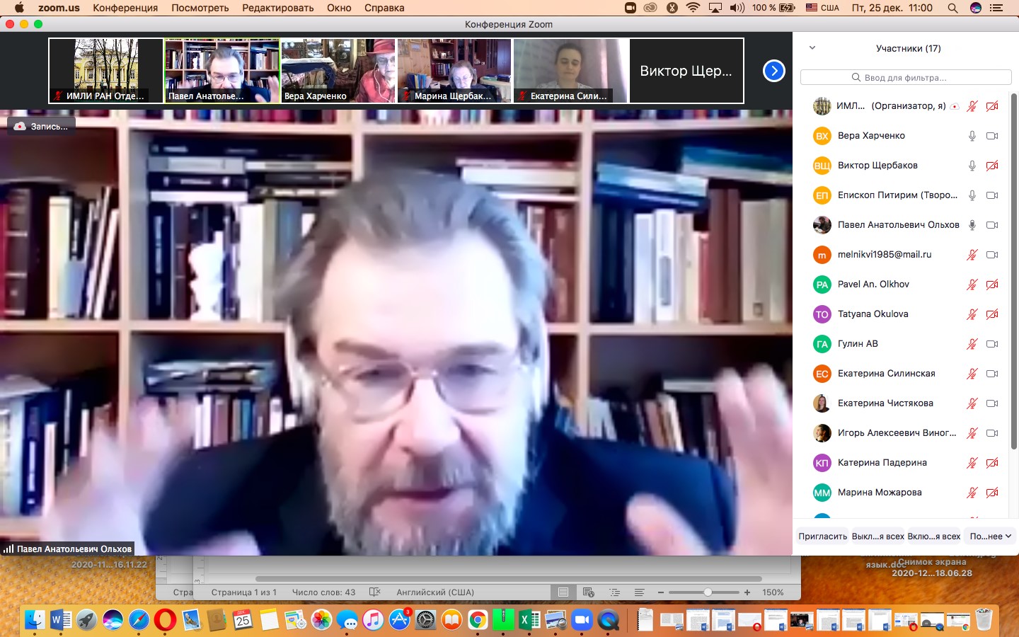 Инициатива проведения первого междисциплинарного исследовательского семинара на тему православной антропологии была поддержана ведущими учеными России, исследователями МГУ им. М.В. Ломоносова, академических учреждений Москвы (ИМЛИ РАН), Санкт-Петербурга (ИРЛИ РАН), Белгорода (НИУ «БелГУ»), Московской и Санкт-Петербургской духовных академий, Православного Свято-Тихоновского гуманитарного университета и др. В предновогодние дни на платформе Zoom прошло первое заседание семинара, которое его участники посвятили памяти известного российского физика, философа и богослова Сергея Хоружего – одного из крупнейших специалистов в области патристического наследия свт. Феофана. Особое внимание к семинару проявили рязанские коллеги, для которых имена святителя Феофана и С.С. Хоружего особо чтимы: святитель здесь служил настоятелем и пребывал в затворе Вышенской пустыни, а С.С. Хоружий – уроженец рязанского Скопина.