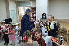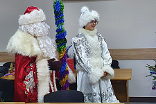 В завершение викторины детей поздравили Дед Мороз и Снегурочка. В программу праздника были также включены традиционные танцы и новогодние песни. Кульминацией вечера стал конкурс костюмов.