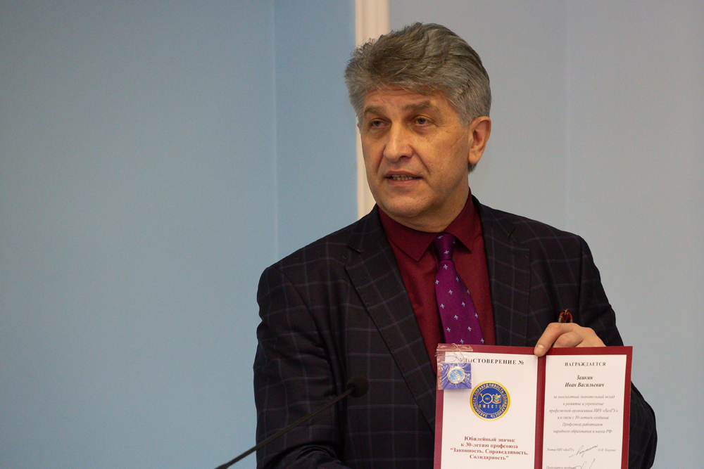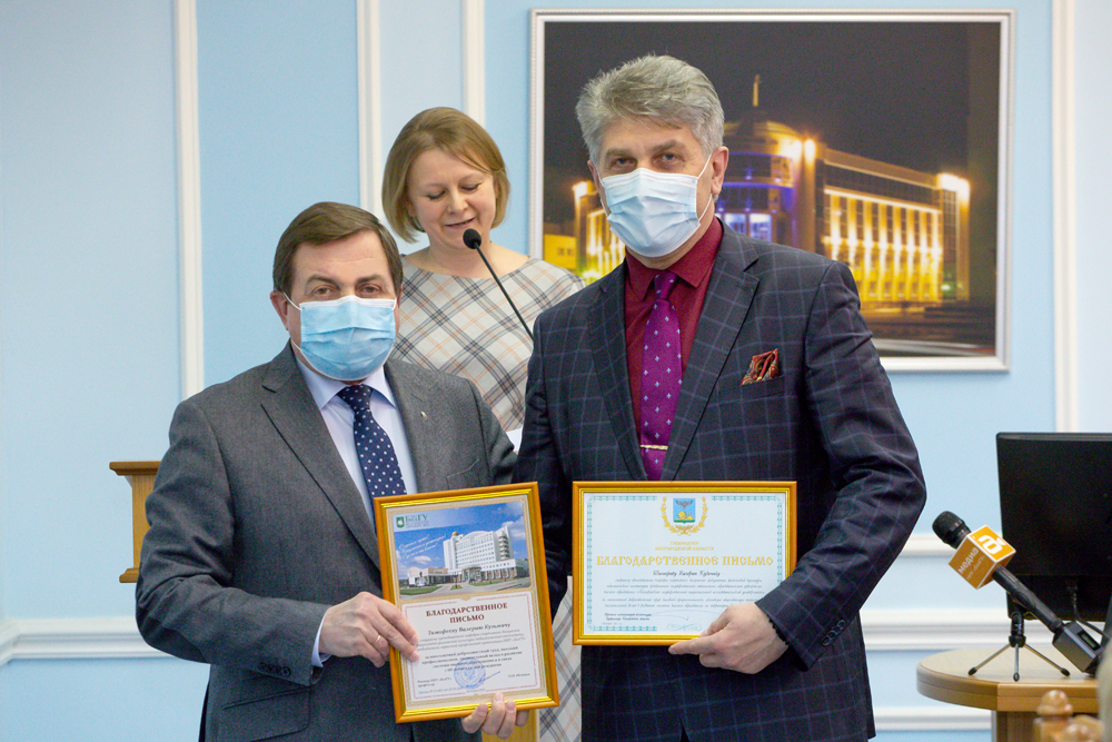 Благодарственным письмом Губернатора Белгородской области и благодарственным письмом НИУ «БелГУ» за активную общественную деятельность и значительный вклад в развитие системы высшего образования был награждён председатель первичной профсоюзной организации вуза Валерий Тимофеев.