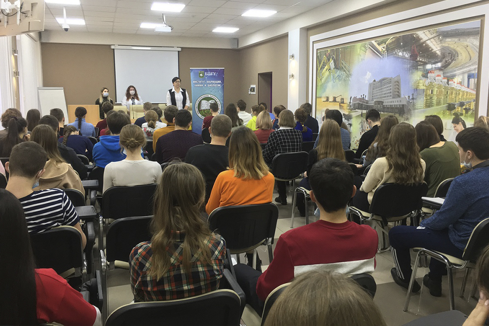 Представители института фармации, химии и биологии провели профориентационное занятие со старшеклассниками, рассказав им о реализуемых специальностях и направлениях подготовки, количестве бюджетных мест и условиях поступления в университет.