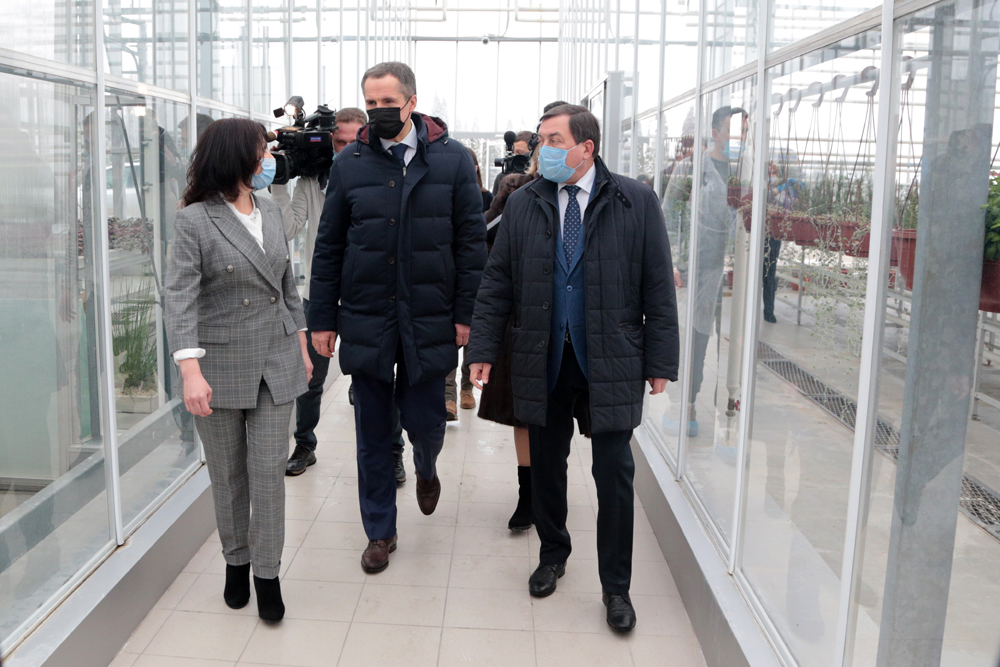 В ходе знакомства с научным потенциалом университета врио губернатора Белгородской области Вячеслав Гладков, заместитель начальника департамента внутренней и кадровой политики – начальник управления науки Екатерина Журавлева побывали в научно-образовательном центре «Ботанический сад НИУ «БелГУ», осмотрели тепличный комплекс и ознакомились с направлениями исследований, проводимых в лаборатории биотехнологии растений и лаборатории генетики и селекции растений, с проектами, реализуемыми в рамках НОЦ «Инновационные решения в АПК», а также с уникальным проектом «Белгородская сирень».