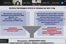 Андрей Петрович акцентировал внимание коллег на росте публикационной активности и объёмов НИОКР, а также на включении в образовательный процесс зарубежных преподавателей. Таким образом, в программе повышения конкурентоспособности выполнено более 83 процентов показателей по всем направлениям: «Образовательная деятельность», «Научно-исследовательская и инновационная деятельность», «Организационный, кадровый и финансовый менеджмент» и другие.