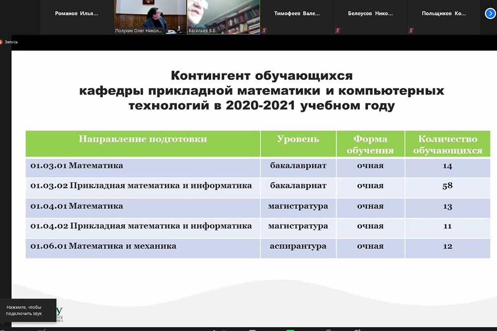 Члены совета поддержали принятие программы развития кафедры и план мероприятий на 2021 год. Ректор дал поручение подготовить договор о практической подготовке совместно с отделом прикладной математической физики вычислительного центра ФИЦ «Информатика и управление» РАН и реализовать его в течение года.