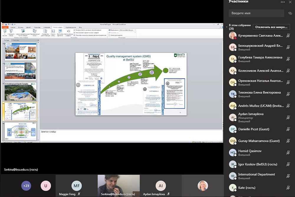 Состоялась первая онлайн-встреча участников международного проекта «Улучшение внутренней оценки качества образования в сфере преподавания и обучения в вузах Азербайджана и России», на которой команда НИУ «БелГУ» представила университет и поделилась практикой формирования внутренней системы оценки качества образования.