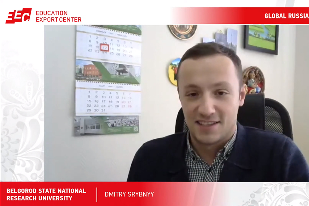 С описанием англоязычных программ, реализуемых в НИУ «БелГУ», выступил директор центра экспорта образовательных услуг управления международного сотрудничества Дмитрий Срыбный. В ходе презентации, которая велась на английском языке, абитуриенты узнали об истории университета, образовательной, научной деятельности, условиях проживания в общежитиях НИУ «БелГУ» и прохождения производственных практик.