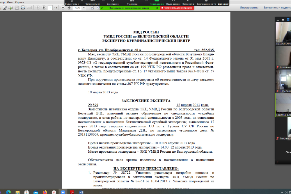 Руководители экспертно-криминалистического центра УМВД России по Белгородской области провели открытое онлайн-занятие для студентов юридического института НИУ «БелГУ»