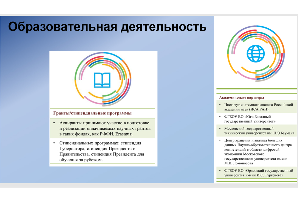 - Для аспирантов предусмотрены повышенные стипендиальные программы, есть возможность получать грантовую поддержку своих исследований в рамках Президентской программы и со стороны различных научных фондов. В НИУ «БелГУ» функционируют автономные диссертационные советы по всем основным специальностям подготовки аспирантуры. У нас много примеров успешной реализации молодыми учеными своего творческого и научного потенциала, - отметил Константин Александрович.