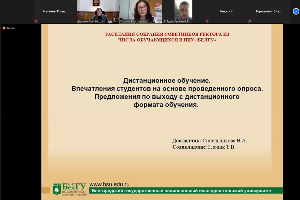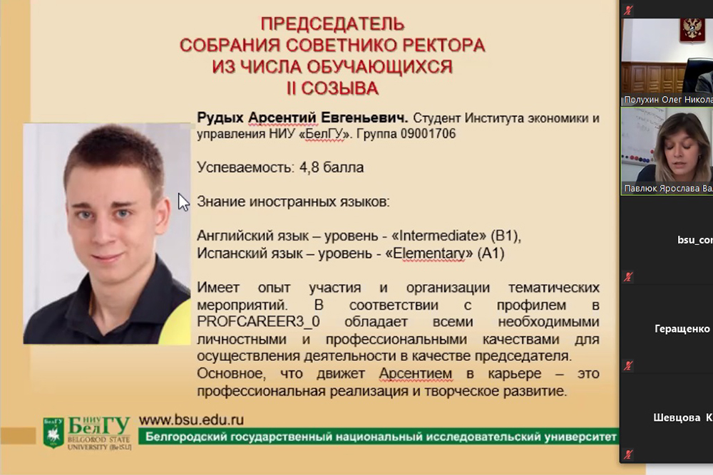 В НИУ «БелГУ» состоялась первая в календарном году онлайн-встреча Олега Полухина с представителями Собрания советников ректора из числа обучающихся II созыва