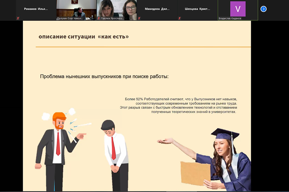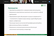 Ректор и советники обсудили также задачи по реорганизации учебного процесса с учётом совершенствования компетентностной модели выпускника. С предложениями по обновлению образовательных программ выступила Дилара Мамедова, которая отметила важность более широкого использования проектной деятельности и возможность самостоятельного изучения некоторых дисциплин. Дилара предложила внести в учебный план студентов курсы soft и self skills. Ректор поручил департаменту образовательной политики рассмотреть возможности реализации этих предложений.