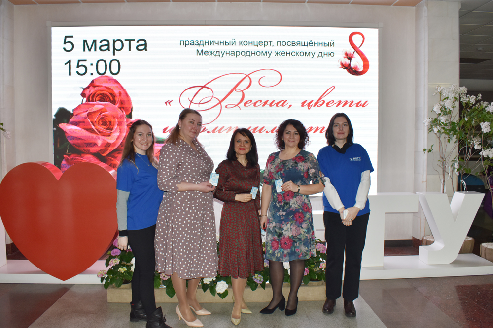 Праздничное поздравление в этот день подготовили творческие коллективы молодежного культурного центра университета. Со сцены МКЦ прозвучали как мировые хиты, так и современные композиции. В этот день женщин порадовали танцевальные номера и звучание музыкальных инструментов. Гостей праздника поздравили солисты и творческие коллективы университета: арт-студия «Вереск», группа «31 регион», ССТ «Данс Хаос», ансамбль «Ритм», ансамбль «Отрада», школа–студия «Вереск», балет «Мариданс», вокальный ансамбль «Альянс», группа «Университет».