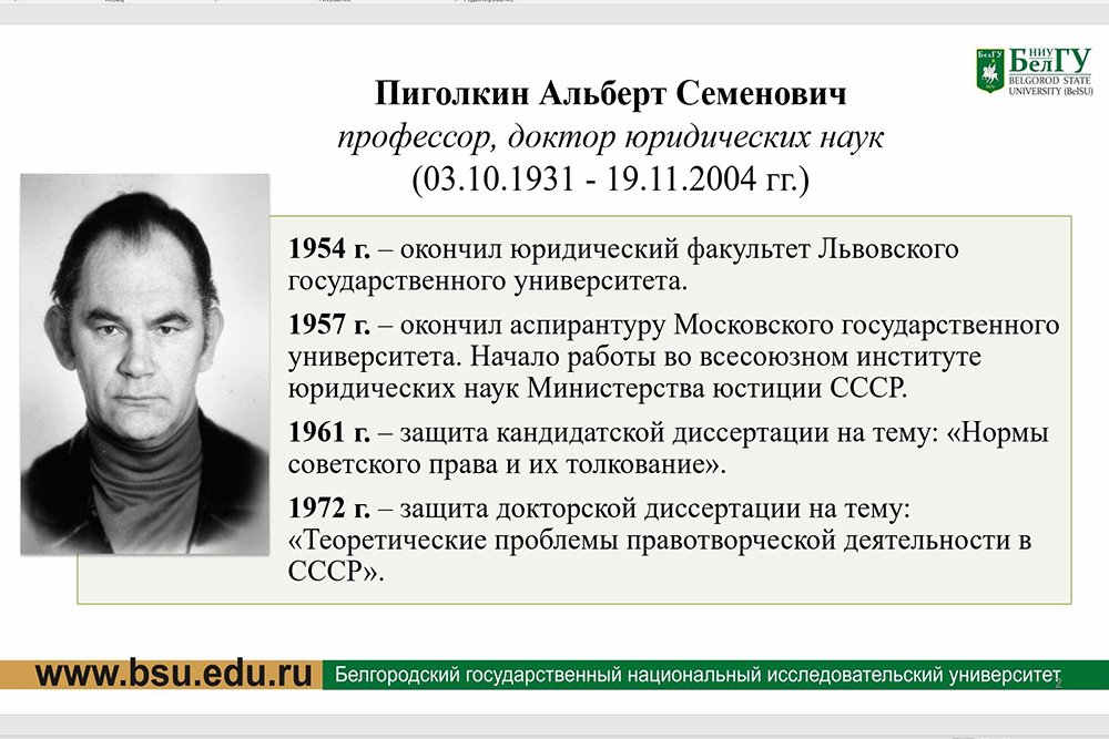 Учёный НИУ «БелГУ» выступил на пленарном заседании Общероссийского годового собрания теоретиков права «Правотворчество в XXI веке: эволюция доктрины и практики (к 90-летию со дня рождения А.С. Пиголкина)»