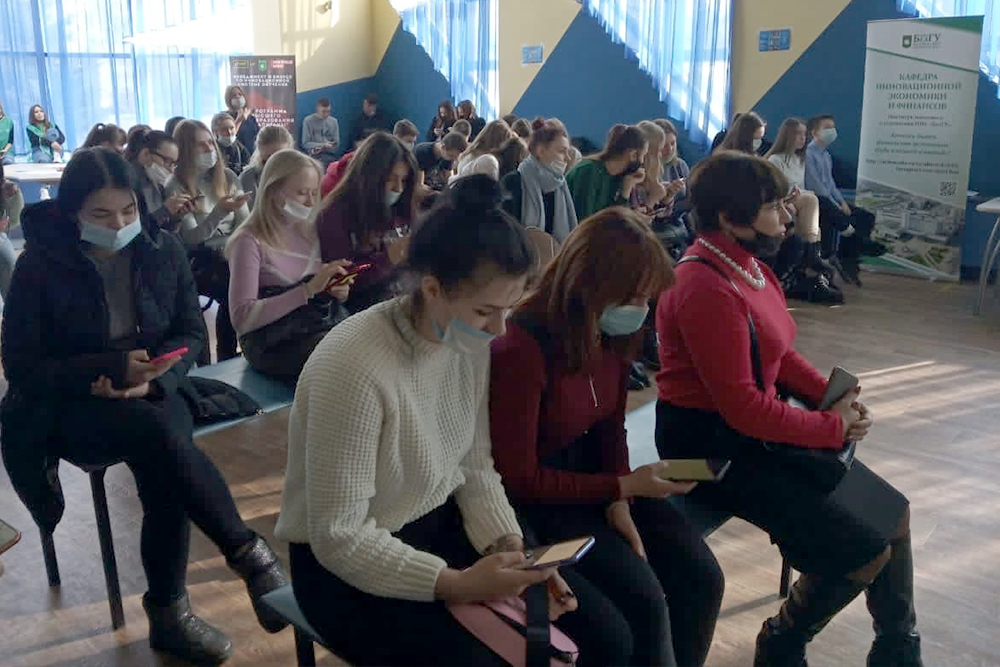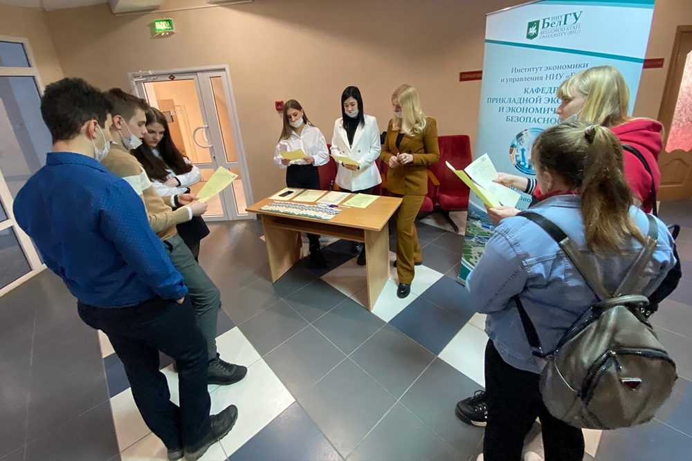 Старшекурсники под руководством доцентов кафедры прикладной экономики и экономической безопасности Анастасии Глотова и Анны Кулик организовали для школьников интерактив «Оценка угроз экономической безопасности предприятия».