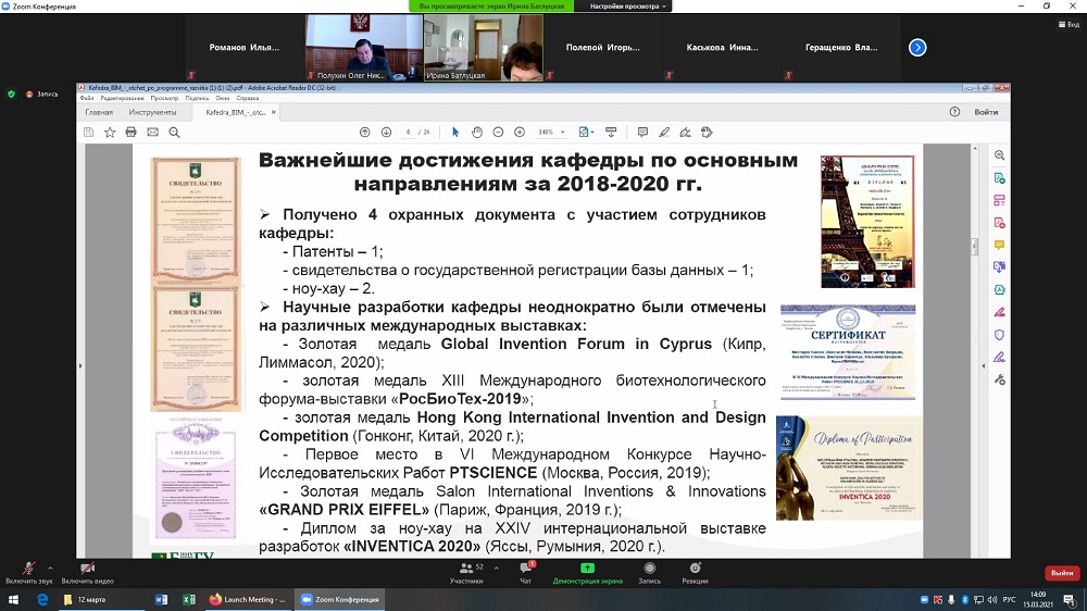 – Если сравнивать с предыдущими годами, то отмечен рост научной продуктивности кафедры по числу публикаций в высокорейтинговых журналах и представлений научных разработок кафедры, отмеченных наградами различных уровней, в том числе на международных выставках, - отметила Ирина Витальевна.