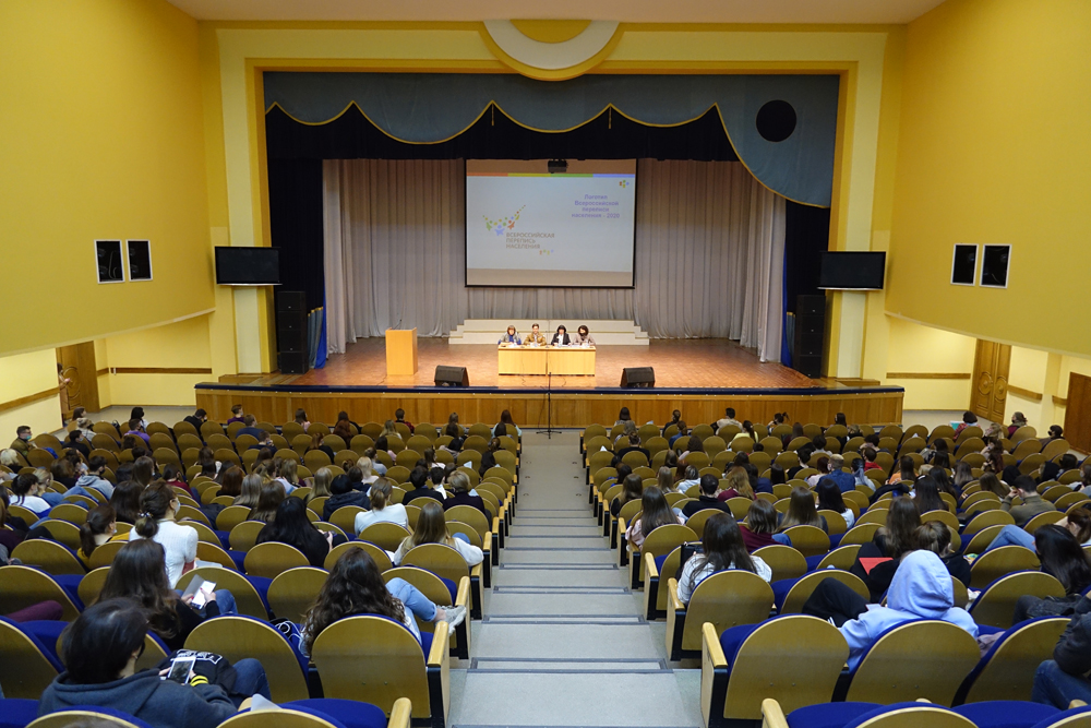 Главный специалист-эксперт отдела статистики населения Ирина Юрина встретилась со студентами вуза, которые примут участие в переписи населения-2020